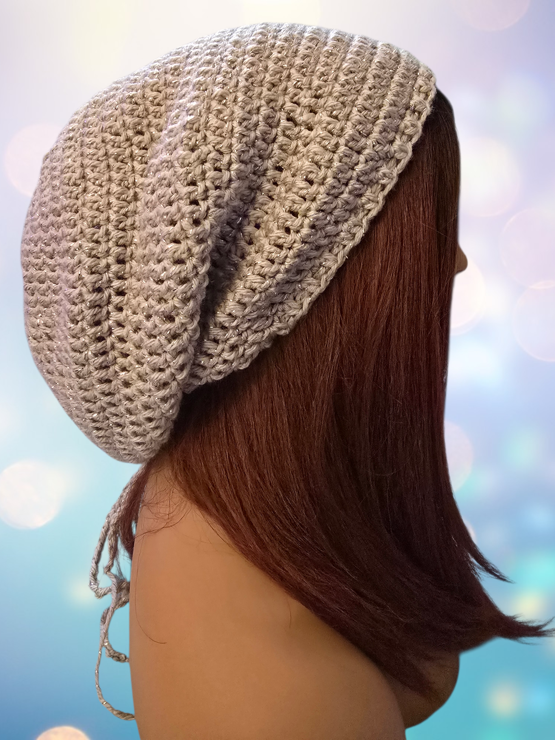 This oversized hat is both stylish and comfortable. Made with crystal glitter, it adds a touch of glamour to any outfit. The slouch design offers a relaxed fit that can be worn all day. Perfect for adding a fashionable touch to any look.